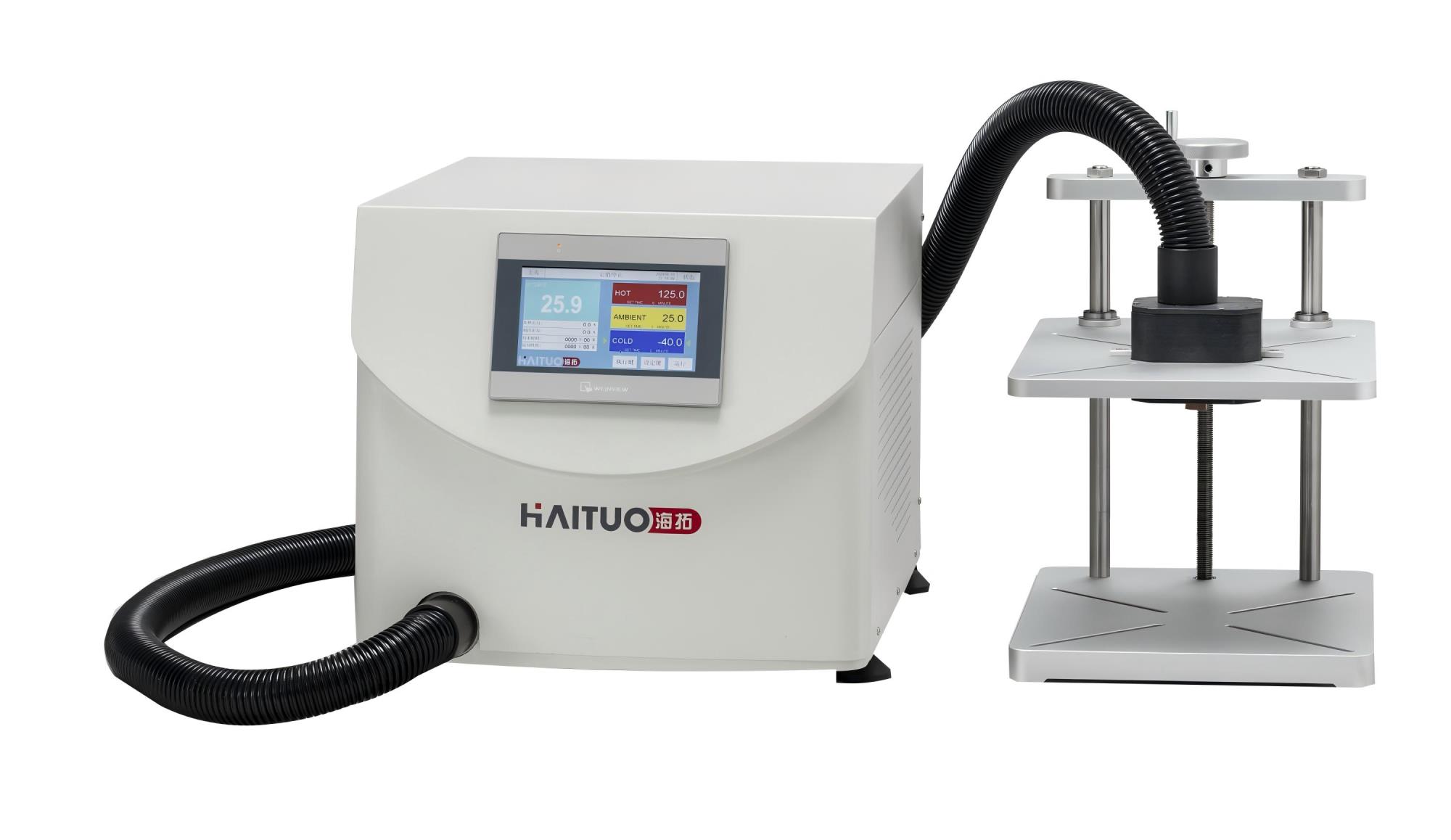 【CIOE2018】海拓儀器攜系列產(chǎn)品精彩亮相 展位號 1225-12269月5日-8日,第20屆中國國際光電博覽會(huì)(CIOE2018)在深圳會(huì)展中心盛大舉行,氣候環(huán)境模擬定制專家海拓儀器攜帶多款熱沖擊試驗(yàn)箱、在線式高低溫試驗(yàn)箱、小型TCT快速溫循箱等產(chǎn)品參展,展位1225-1226歡迎業(yè)界朋友蒞臨展會(huì)交流。海拓向訊石介紹,海拓此次展出的在線式高低溫試驗(yàn)箱和小型TCT快速溫循箱可應(yīng)用于光通訊、半導(dǎo)體、電子行業(yè)可靠性/性能測試方案。150L的容積,每分鐘線性溫度15℃,溫度范圍可控制在-70℃~+150℃,同款設(shè)備采用了同行業(yè)一般也不會(huì)挑戰(zhàn)使用的風(fēng)冷系統(tǒng),自主研發(fā)控制系統(tǒng),控制精確,快而穩(wěn)定,一定程度上保證了設(shè)備的使用周期。智能電子自動(dòng)轉(zhuǎn)換膨脹系統(tǒng),根據(jù)負(fù)載自動(dòng)調(diào)節(jié)冷媒流量+智能型電熱功率,(負(fù)載)升降溫匹配,自動(dòng)輸出功率值,比傳統(tǒng)設(shè)計(jì)可省電30%以上,且占地僅需0.27平方米,不僅保證了產(chǎn)品的質(zhì)量,也為客戶節(jié)約了一定的成本。同時(shí),海拓儀器還展出了一款熱沖擊試驗(yàn)新